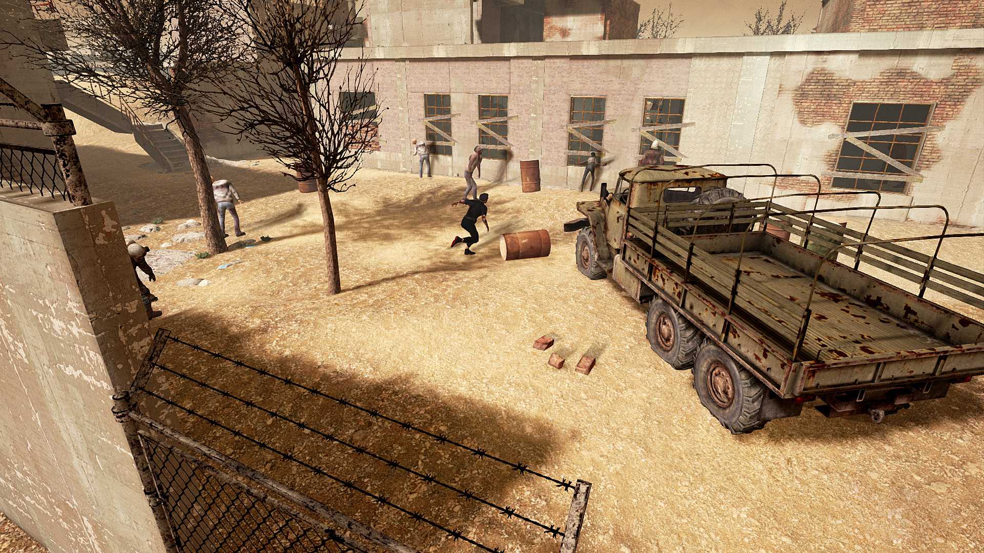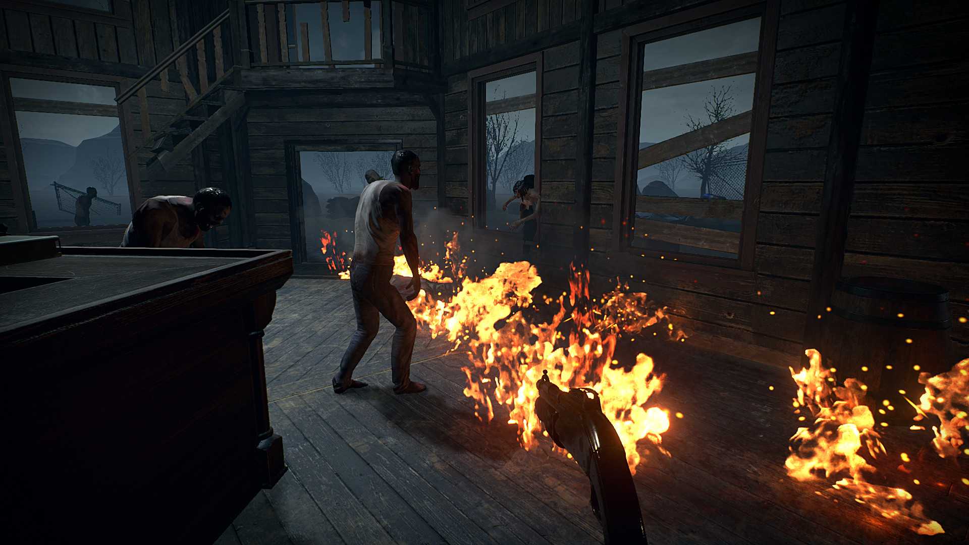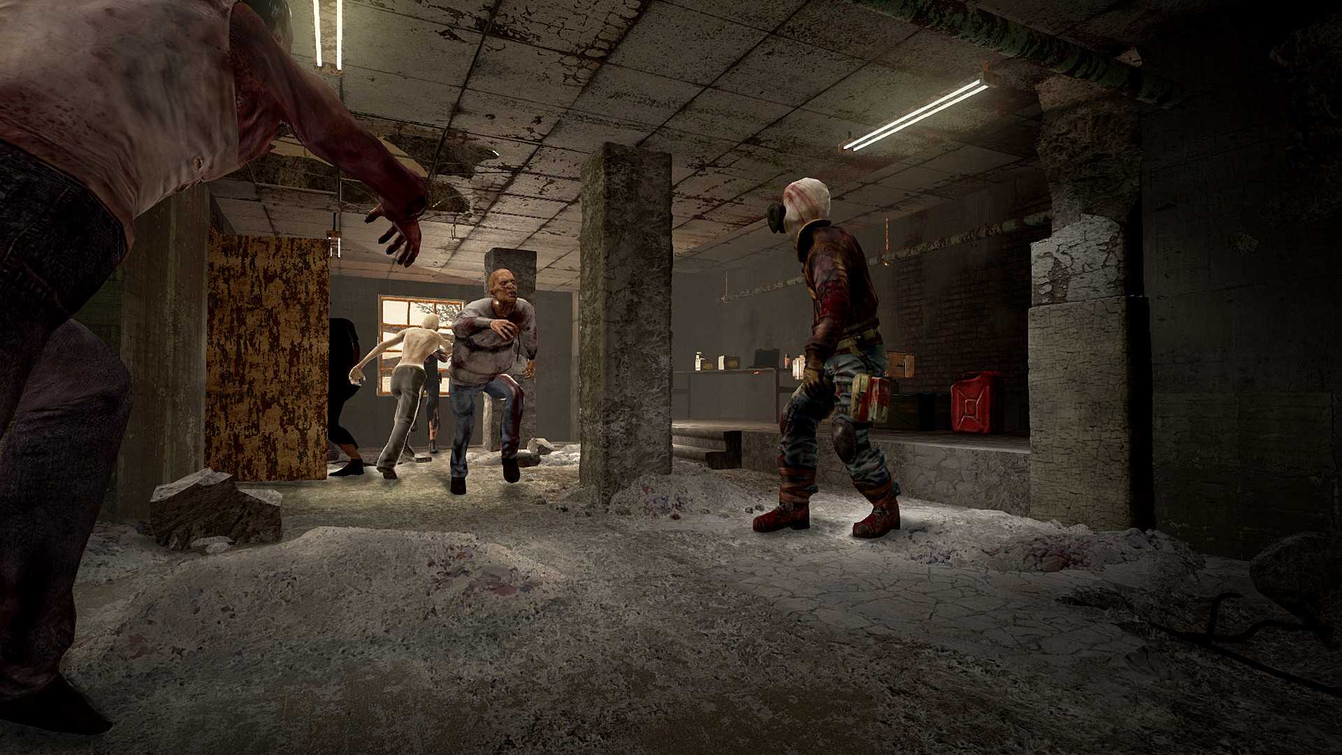 Тщательно изучайте игровую карту, чтобы вовремя обнаружить полезные предметы или предупреждающие знаки, такие как, бензиновые канистры, рабочие системы внутренней связи, ноутбук, лежащий на полке с небольшим процентом зарядки, или же предупреждающий крик воронов, о том, что кто-то приближается. Как вы уже могли понять, здесь придется отбиваться от зомби, точнее от волн зомби, держать окна заколоченными, пока вы находитесь в здании, чтобы зомби не могли пробраться внутрь. Стоит предупредить, что для одного человека, это будет нелегкой задачей, поэтому лучше будет играть в паре. Найдете канистры, взрывайте с их помощью зомби. Также, у вас есть гранаты, которыми вы можете опять же наделать не мало шороху. Берегите здоровье и боеприпасы, помните, они не бесконечные, хоть пополнять их естественно можно. Главное следите за тем, чтобы у вас всегда оставались патроны на следующую волну. В игре имеется оружие, которое можно купить после того, как насобираете достаточное количество валюты. Для передвижения, игра использует телепорт, по клеткам. В общем, если вы считаете себя любителем игр про зомби, сурвайвал жанра в целом, а еще и фанатеете от Виртуальной Реальности, тогда вам определенно стоит