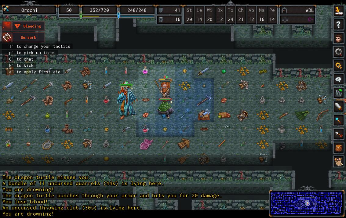 Вы встретитесь лицом к лицу с опасностями в виде подземельных монстров, наземных, агрессивно-настроенных против вас, рыцарей и существ, названий которым нет. Исследуйте волшебный мир игры, прокачивайте персонажа, победите всех драконов, разыщите все спрятанные сокровища, нажав купить ADOM (Ancient Domains Of Mystery).