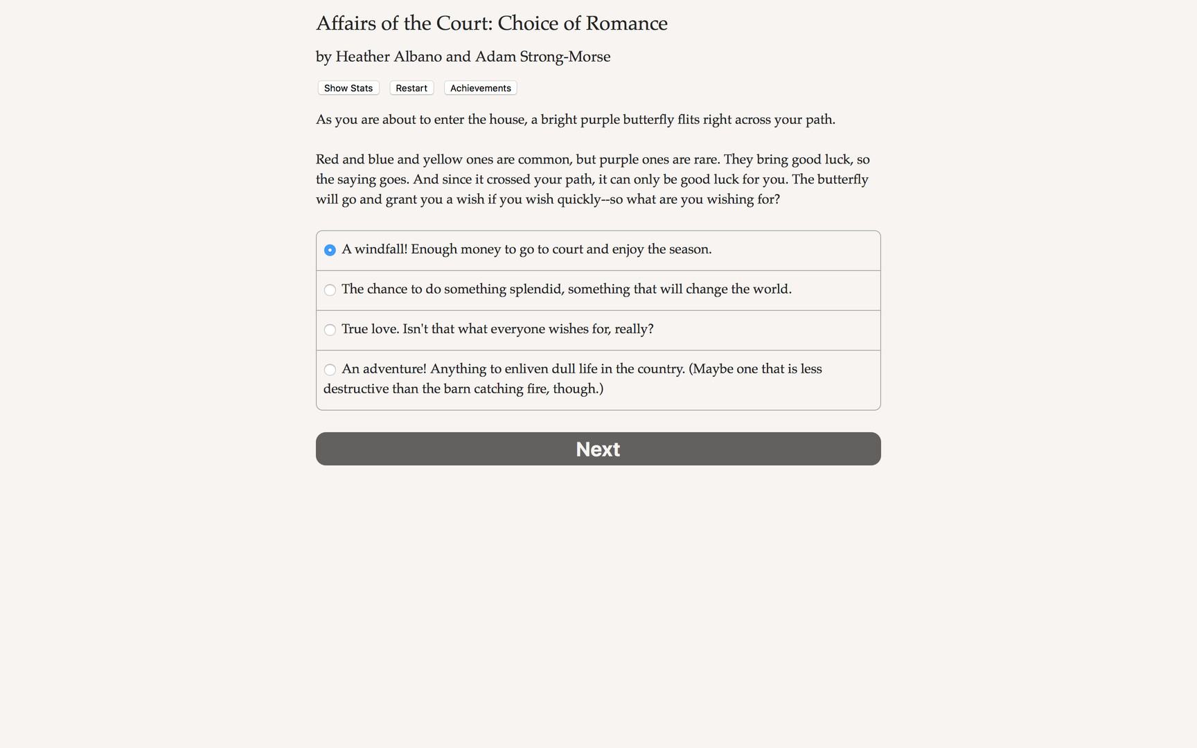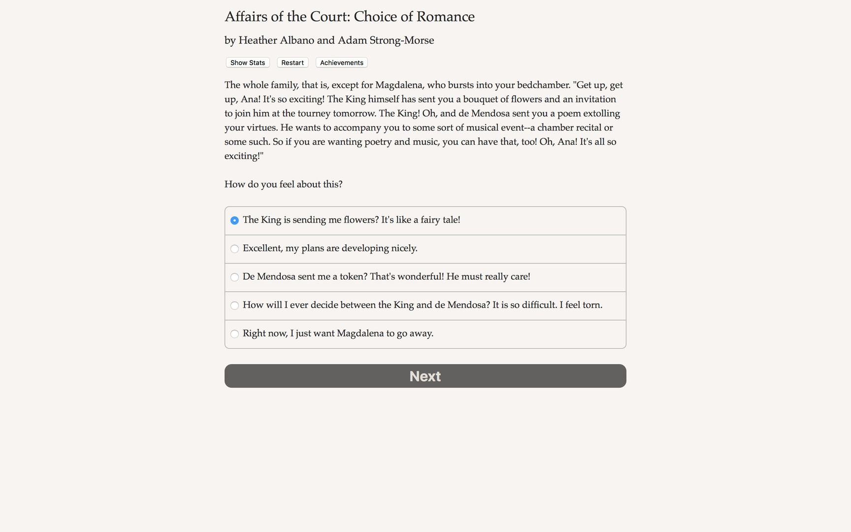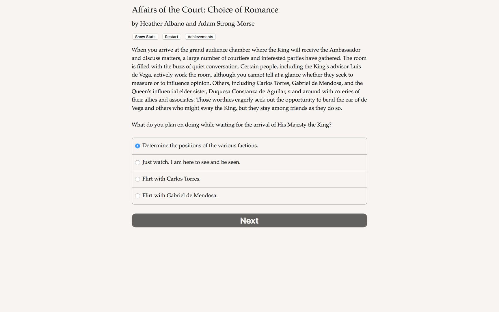 Affairs of the Court: Choice of Romance - это эпический интерактивный фэнтэзи роман, это рассказ о романтике, обмане и дворцовых интригах, где ваш выбор контролирует всю историю. Игра полностью основывается на тексте, тут около 223,000 слов, тут нет графики или звуковых эффектов, все подпитывается огромной, неудержимой силой вашего воображения.