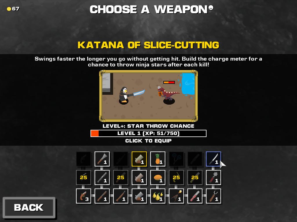Возьмите под свой контроль пингвина-алхимика и начинайте неустанную борьбу против динозавров! Alchemist Penguin – это аркадная экшен игра, где вы будете сражаться против армии динозавром, которые только и становятся сильнее. Вы вооружены оружием, зельем и техникой, а также различными бустами, которые будут повышать ваши навыки, чтобы помочь вам в вашей борьбе.