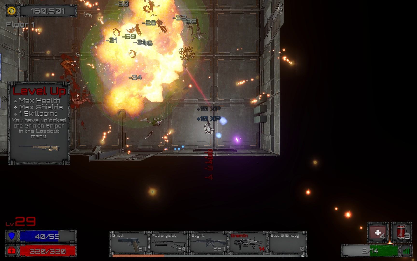 - В начале каждого прогона вы можете оборудовать свой характер с новым механизмом, который покупается с кредитами, полученных во время предыдущих запусков.