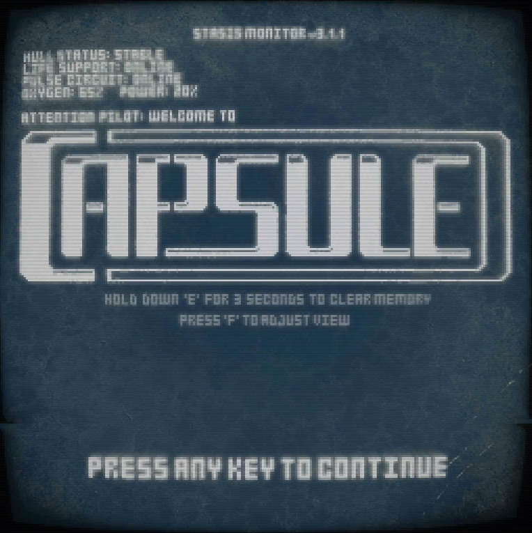 Научно-фантастическая компьютерная игра Capsule, своего рода хоррор. Вам предстоит вести наблюдение за всем игровым процессом через специальный локатор и продвигаться по разным локациям для разгадки таинственных и запутанных историй, а устрашающие события, разворачивающиеся на вашем пути, попытаются сломить вашу волю и заставить повернуть вспять.