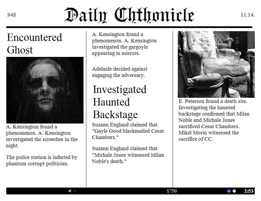 Daily Chthonicle: Editor's Edition –это приключенческая игра, которая позволяет игроку попробовать себя в роли босса и редактора сверхъестественного издания газеты. Действия игры происходят в темном мире с привидениями и призраками, зомби, монстрами и даже безумными убийцами, все они делают вид, что они обычные люди, после того, как они украли тела своих жертв или пропитались человечеством.
