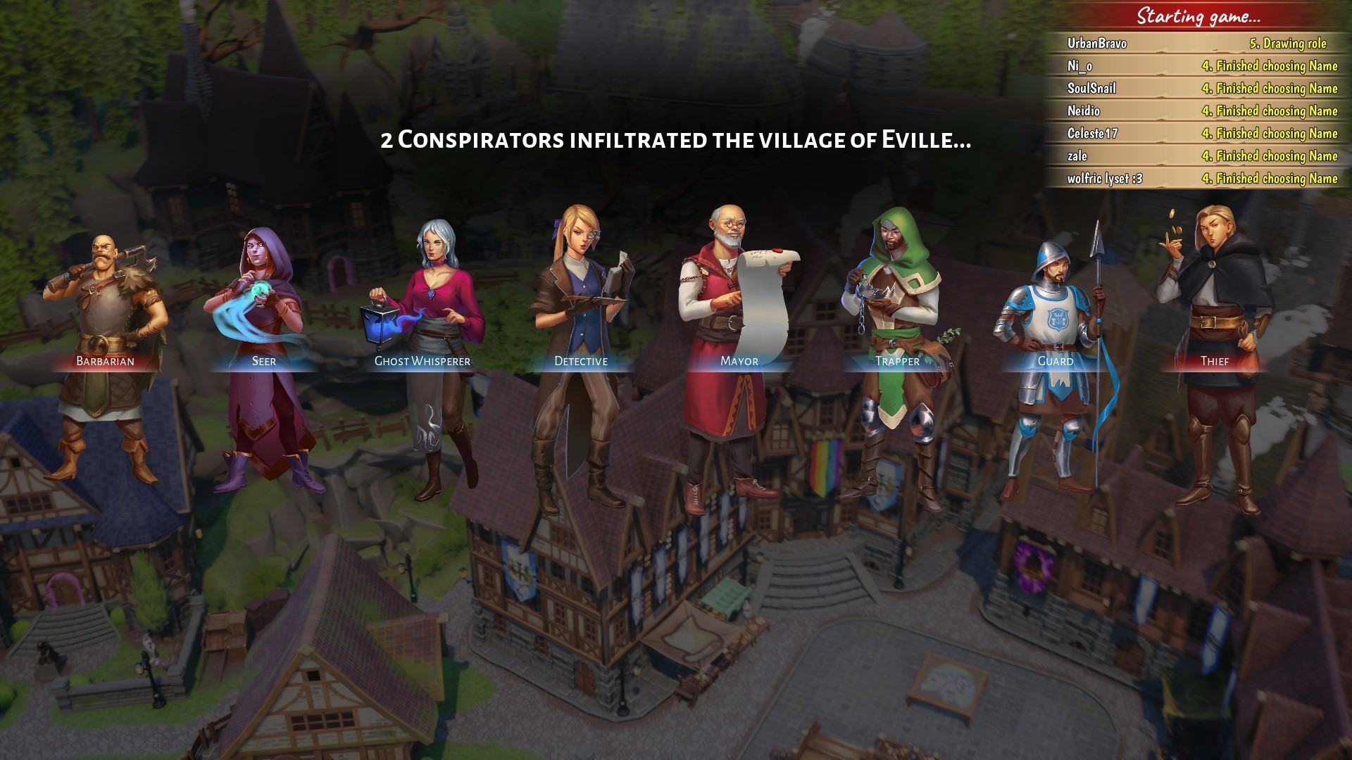 - В деревне произошла серия дерзких убийств, и кое-кто подозревает вас! Возможно, небезосновательно? Убедите остальных, что вы не убийца, и вас не казнят!