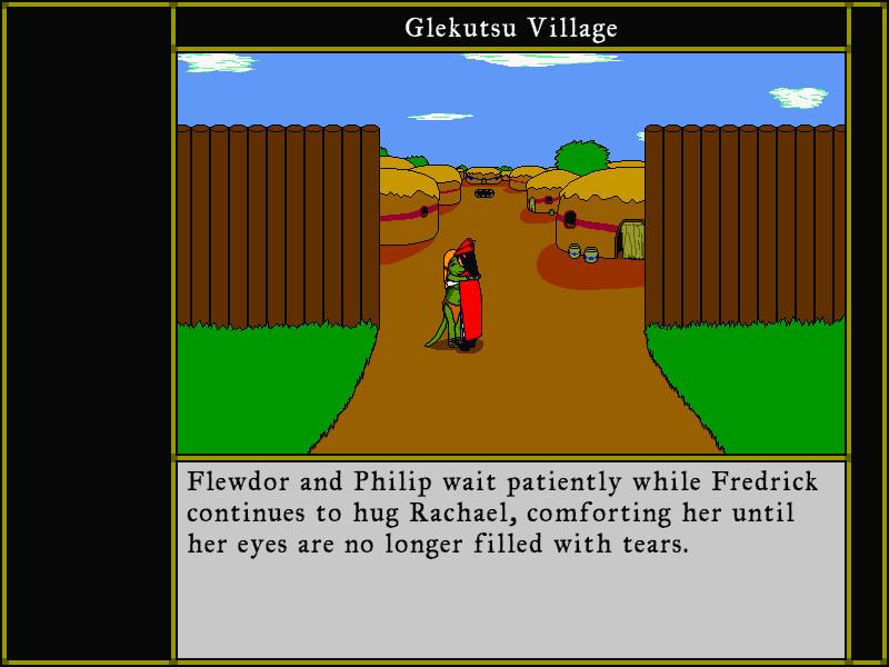 Разрешение экрана 800x600, простая графика в стиле старой школы, то есть 216-цветная графика, полноэкранный режим, который растягивает пиксели до размера вашего экрана, все это есть в Farnham Fables! По сюжету этой игры, когда Наиг и её племянница Кэлли посещают замок, их ожидает неожиданная встреча с королем Фарнэме, которая приводит к короткому рассказу о трёх его сыновьях, которые отправились в деревню людей-ящериц.