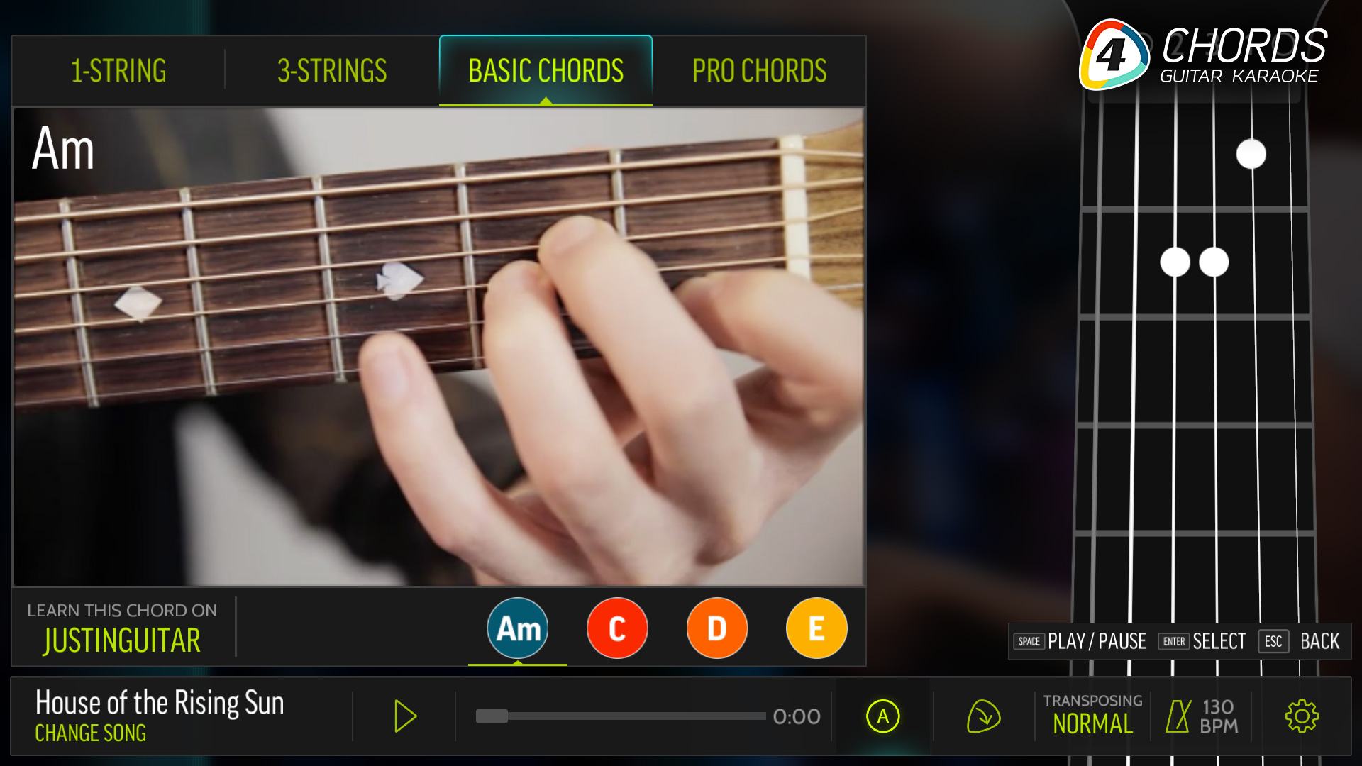 FourChords Guitar Karaoke – это программа от независимой компании Musopia, которая научит своих пользователей играть на гитаре в течение нескольких минут. FourChords Guitar Karaoke делает это быстро, легко и весело, вы сможете играть свои любимые хиты. Полезные видео из «JustinGuitar» покажут вам, как играть каждый аккорд, в то время как стиль караоке с текстами и минусовками делает все, но игра на гитаре на вас.