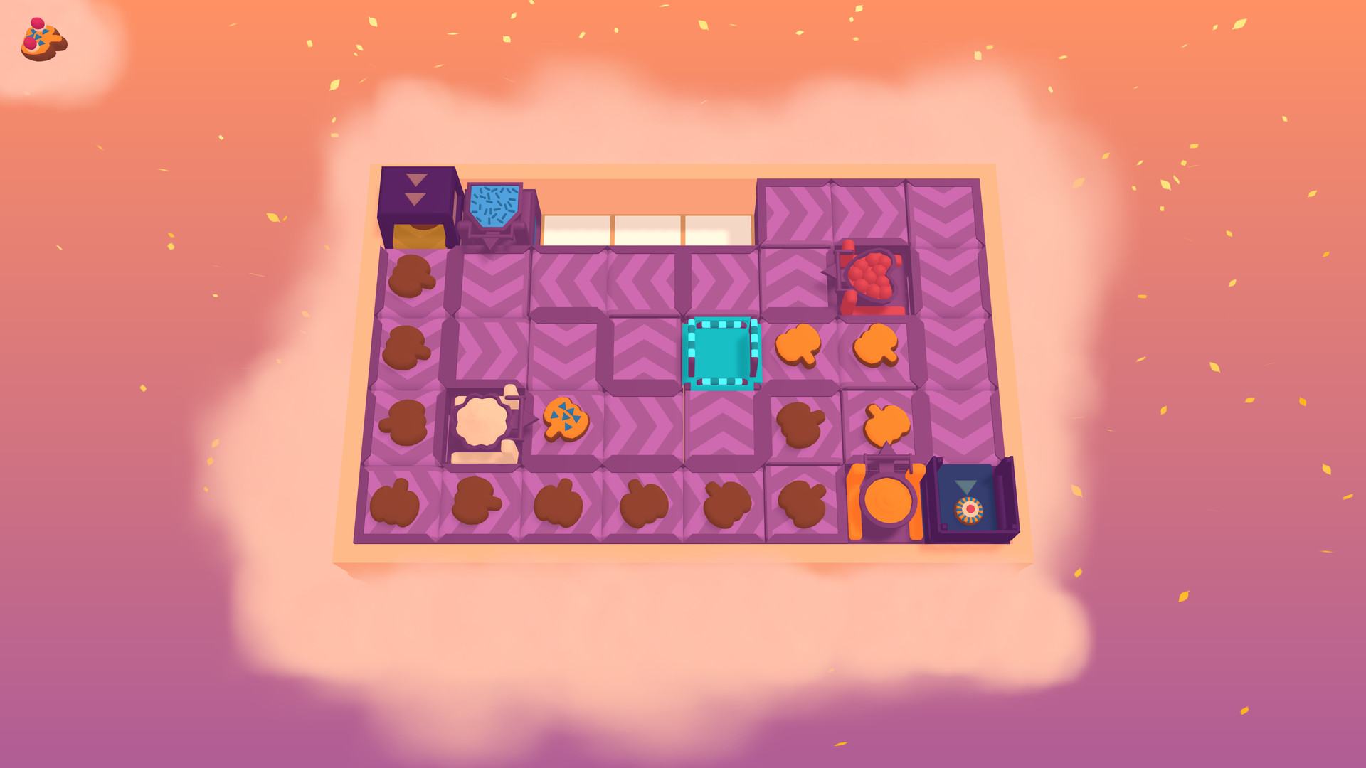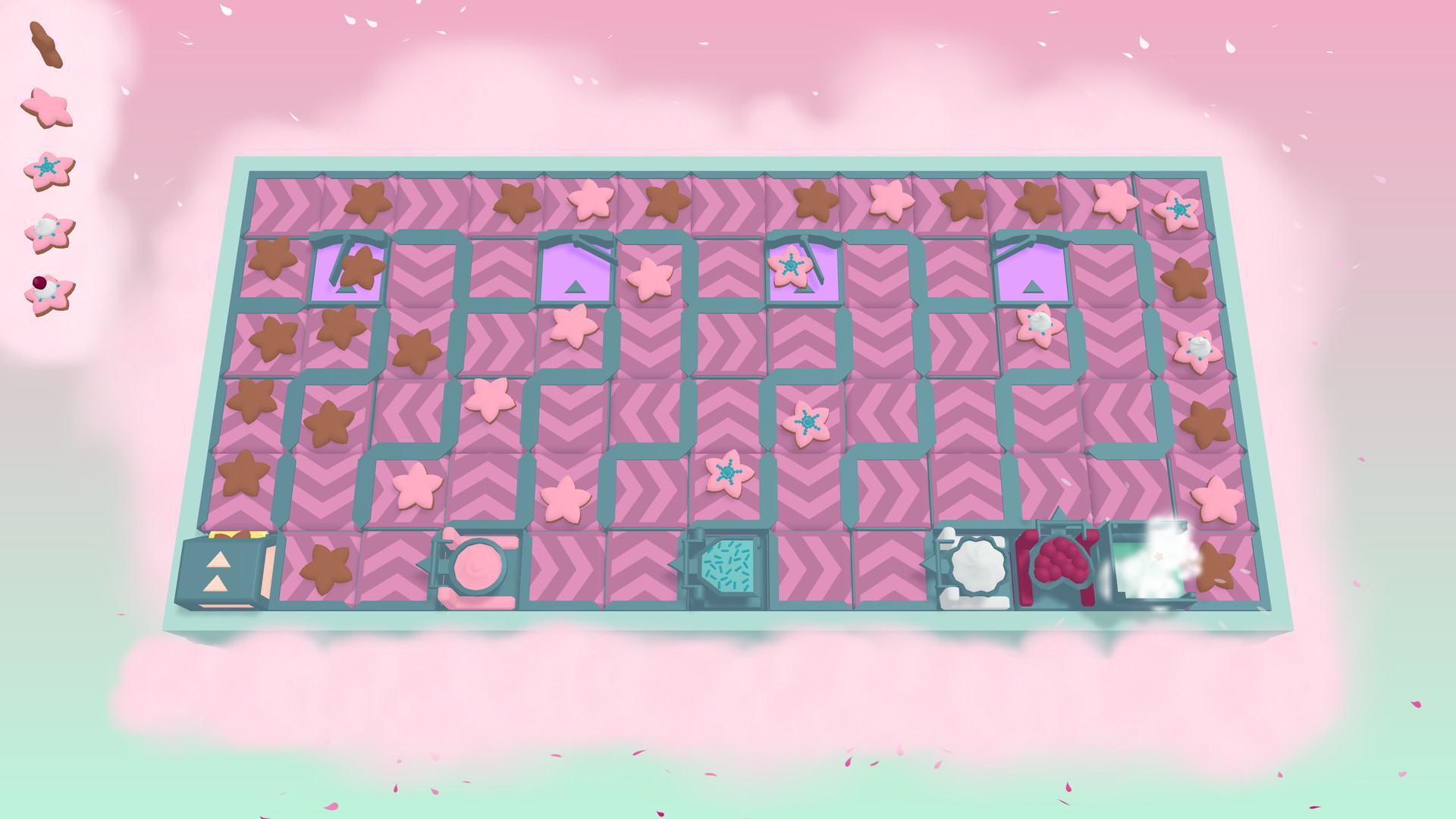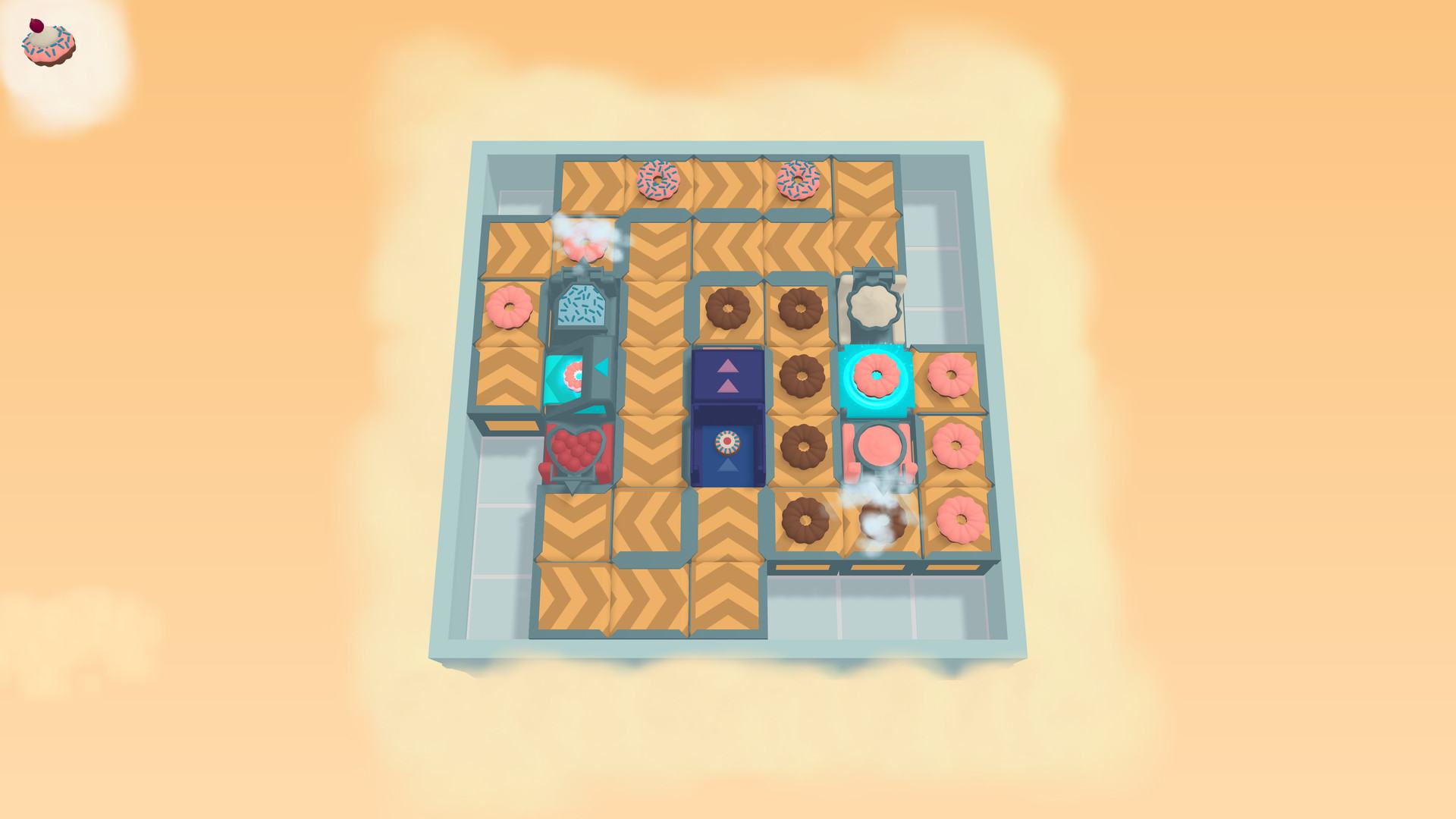 Расставляйте конвейерные ленты, чтобы разгадывать головоломки на самой очаровательной фабрике по производству пончиков!