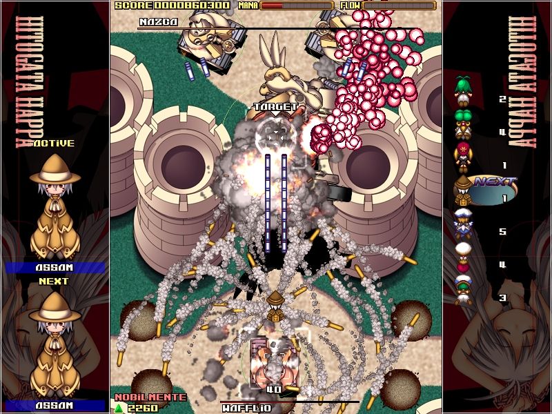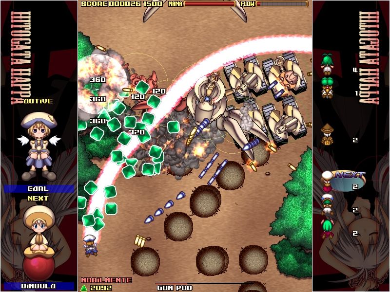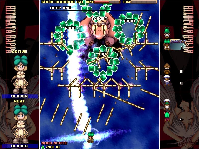 HitogataHappa считается самой сложной стрелялкой всех времен и народов. Эта 3-я часть из серии игр Gundemonium Collection. HitogataHappa, она отличается от двух предыдущих тем, что у нее вертикальная прокрутка, которая осуществляется вверх. В игре вы можете увидеть много нового и удивительного оружия, из которого вам обязательно захочется пострелять.