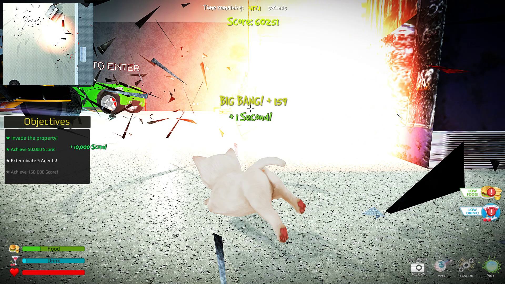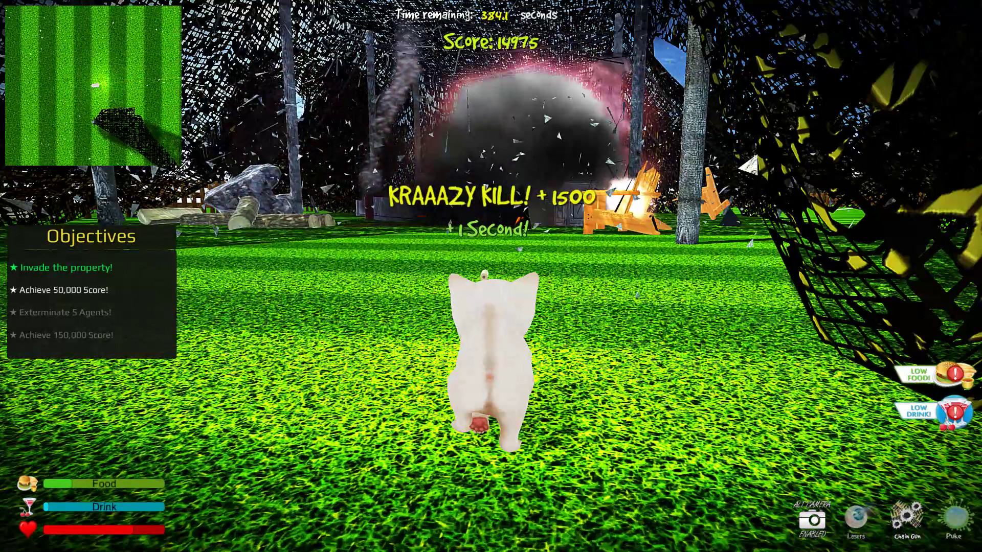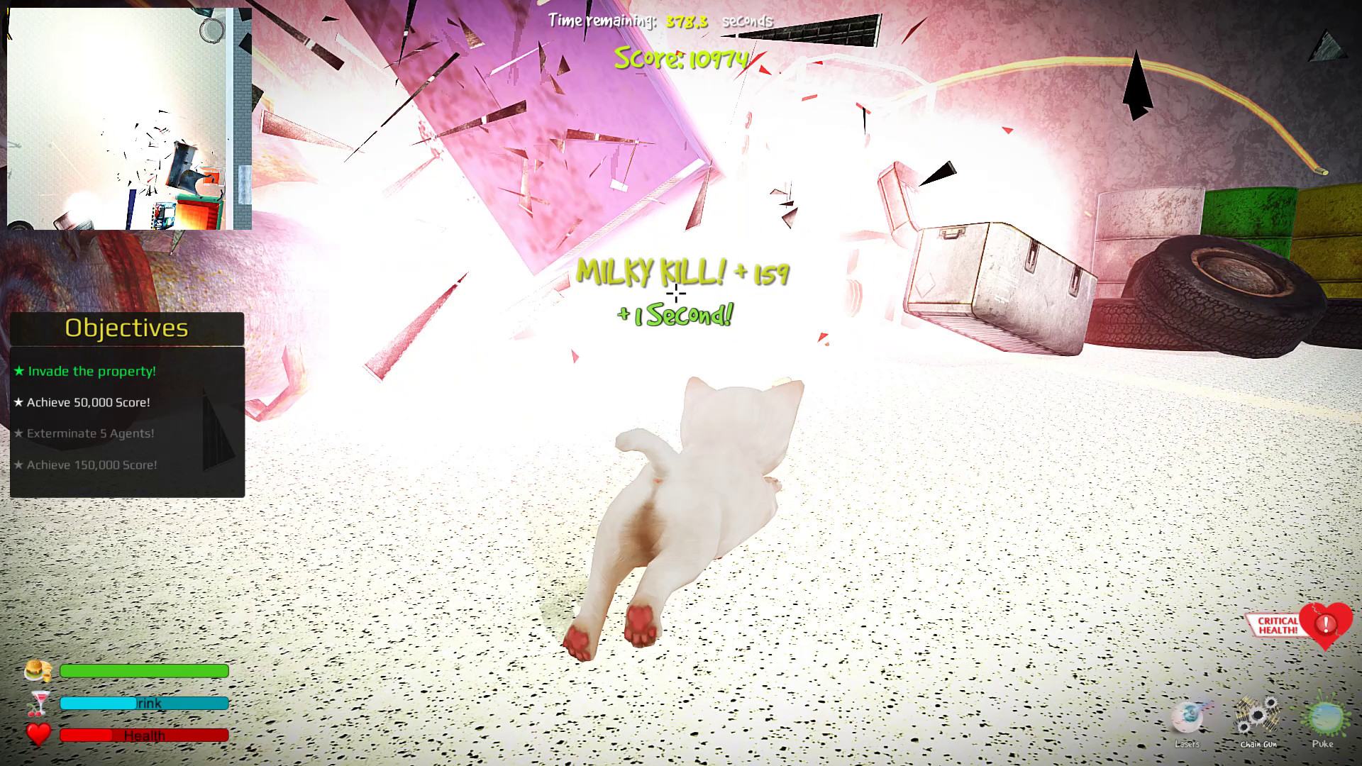 Kitten Rampage - это глупая, но веселая игра, в которой ваша цель - уничтожение. Вам нужно уничтожать! Уничтожать, как можно больше. Используйте последние кошачьи технологии для этого: пистолеты, автоматы, дробовики, лазеры и взрывчатка.