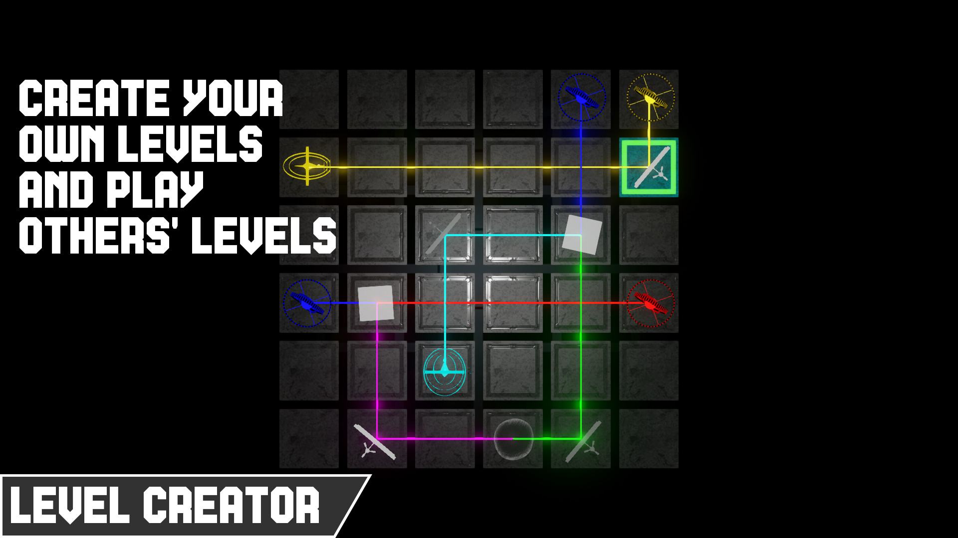 Вы также можете создавать свои уровни со своими головоломками, чтобы поделиться ими с друзьями! Поставьте зеркало на сетке, чтобы согнуть свет. Вы можете вращать их, перенаправляя тем самым лучи к цели.