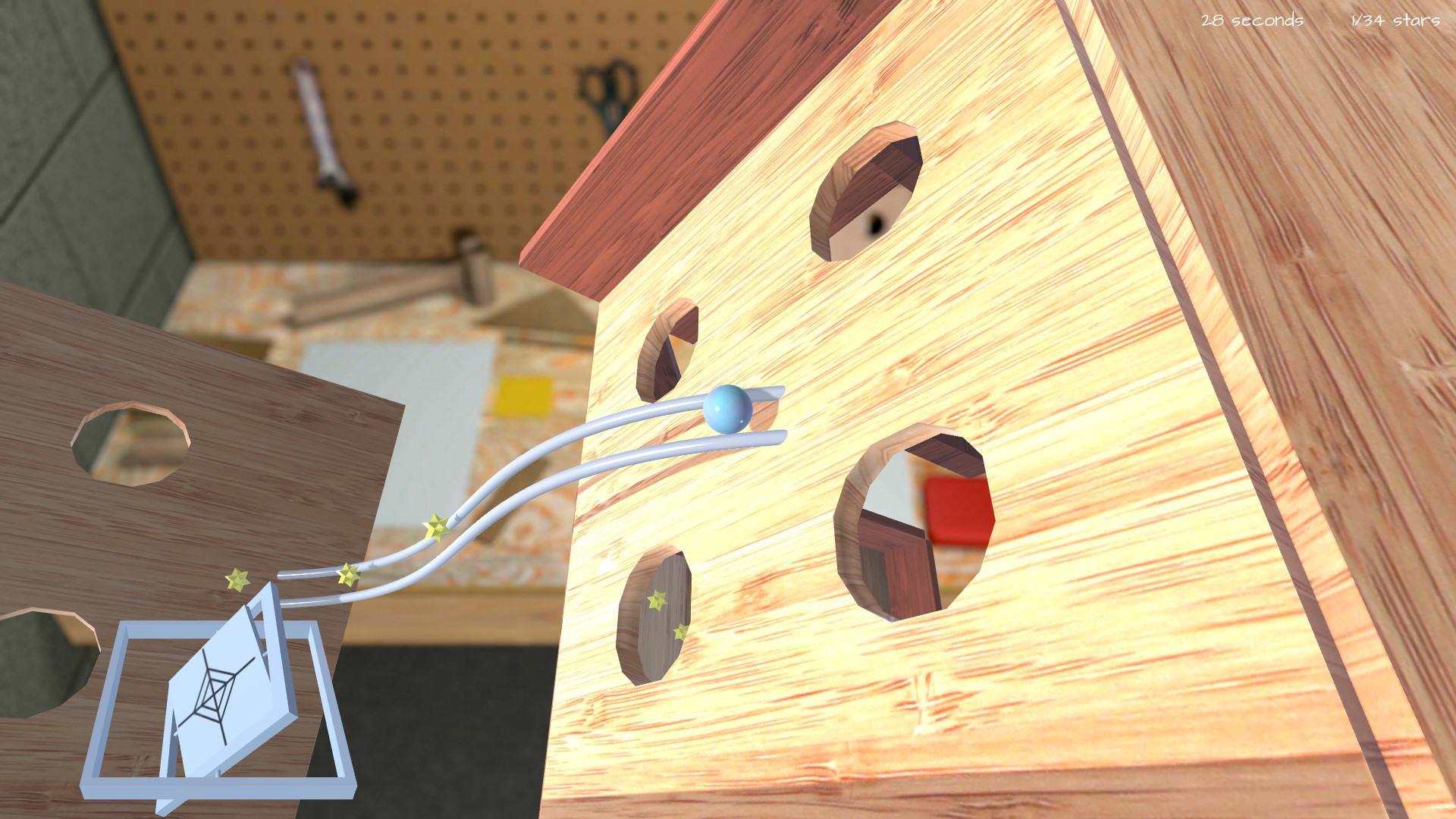 Marble Muse - это игра про маленький мраморный шарик, с помощью которого экспериментатор проверяет надежность своих гипотез и изобретений. Шарик должен прокатиться в специальное отверстие, не встретив сопротивления. Есть 4 уровня сложности, режим поиска секретов, а также абсолютно натуралистичная физика, позволяющая точно рассчитать, как именно и куда покатиться шарик.