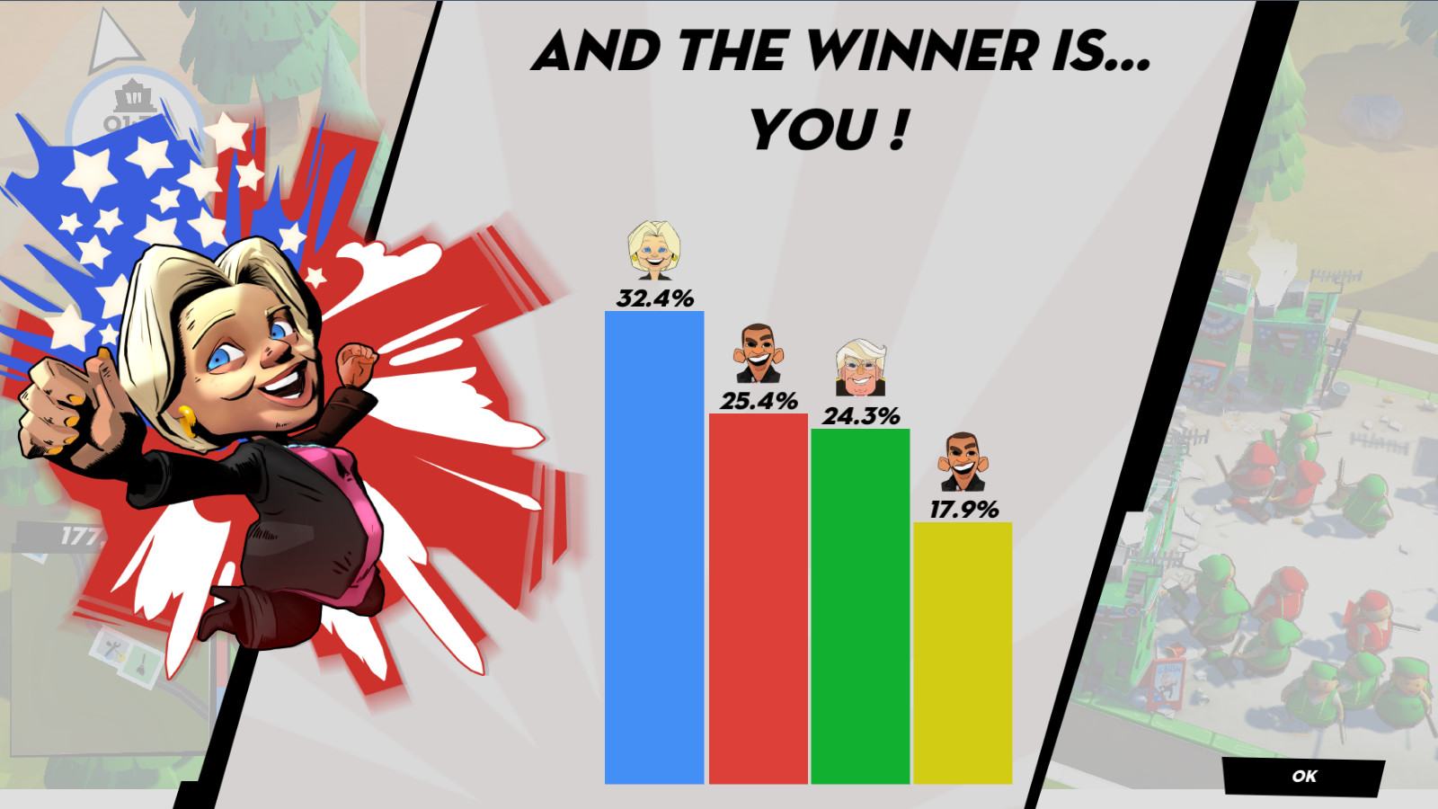 Как вы думаете, есть ли у вас то, что нужно, чтобы пережить жесткую конкуренцию в ходе предвыборной кампании и стать следующим президентом США? Вам пора начинать предвыборную кампанию: общайтесь с людьми, давайте переоцененные скудные обещания, как и все политики, и поучаствуйте в нескольких скандалах, потому что никто не попадает в Белый дом, если он немного не искупается в грязи.