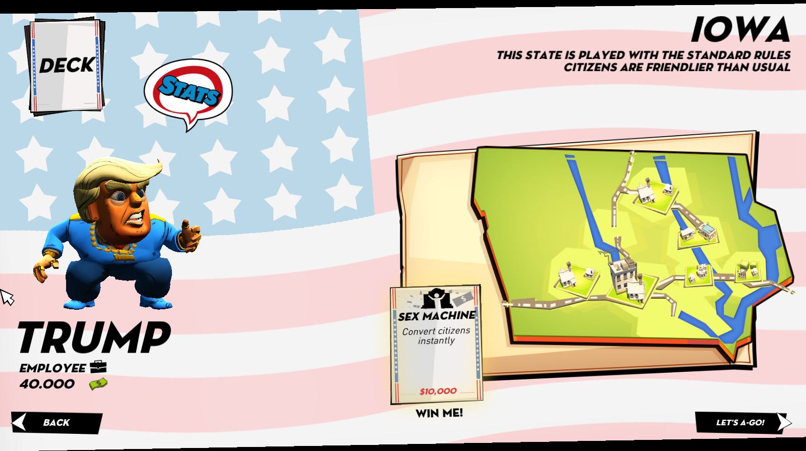 Megalo Polis – это игра, которая дает вам шанс стать политиком и окунутся в мир этого безумия, делайте все что в ваших силах, чтобы стать следующим президентом Соединенных Штатов Америки.