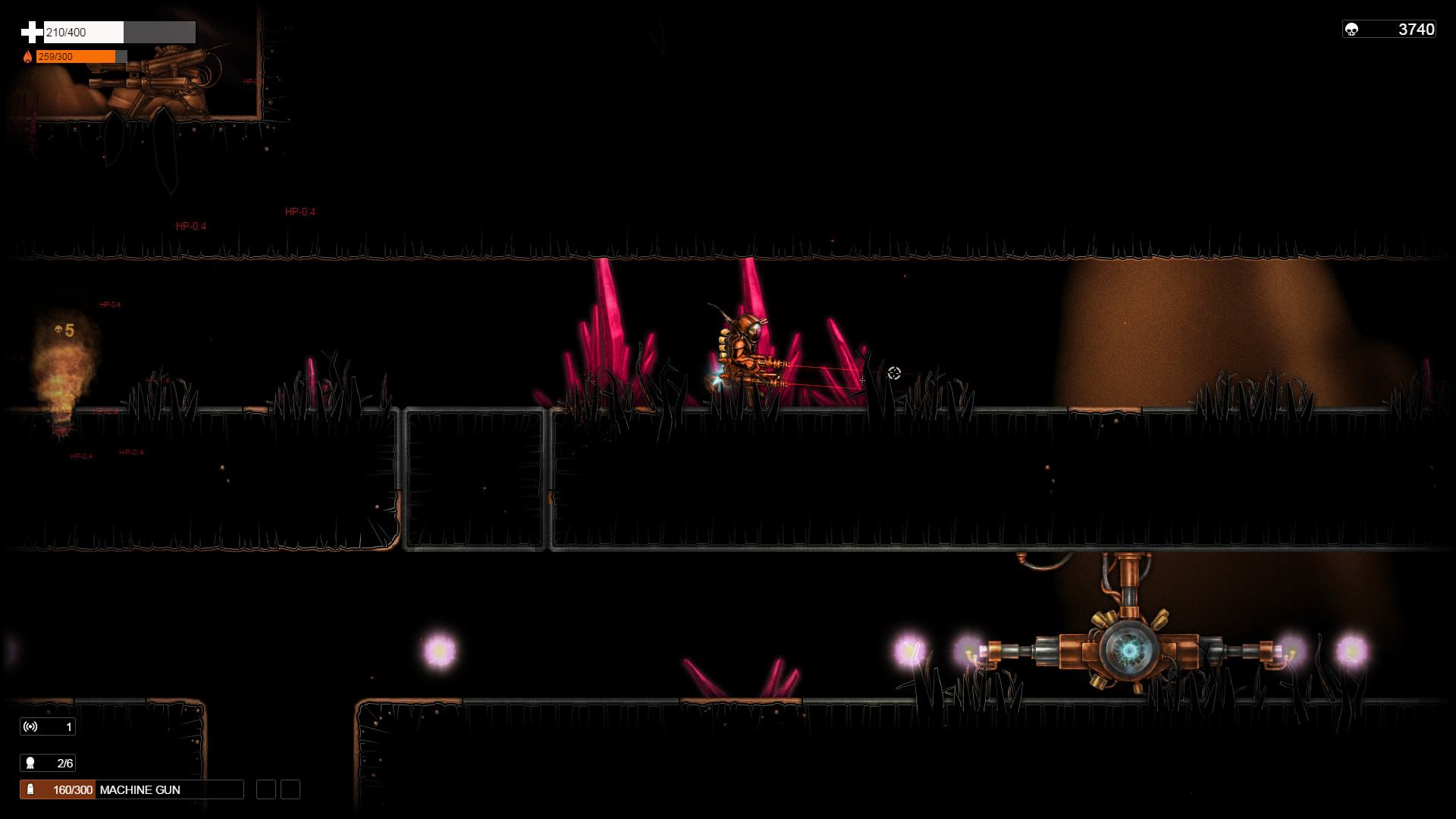 Вам придется занять поиском новой жизни и природных ресурсов, развертывать маяки для горнодобывающих беспилотных летательных аппаратов, а также находить древние чужеродные артефакты, которые помогут вам в освоении «Оранжевой Луны». Игрока ожидает десять различных уровней и четыре типа боссов, семь различных видов оружий, вы сможете улучшать оружие и боезапасы к ним, а также улучшать другое оборудование.