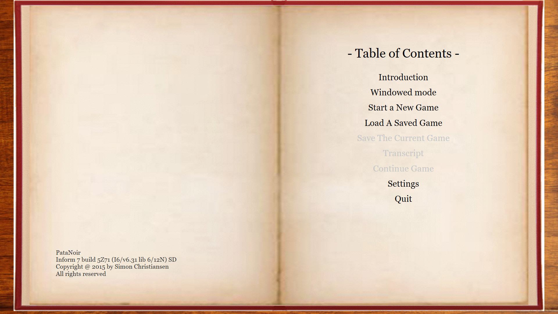 Игра PataNoir это текстовая приключенческая инди игра. Пропала дочь барона, и вы единственный человек, который может ее найти. С вашем крутым неисчерпаемым арсеналом, нет ничего невозможного и вы справитесь с этой задачей без проблем. PataNoir - это дань уважения к классическим рассказам о частных ловких детективах,написанная со всеми сложными метафорами и сравнениями.