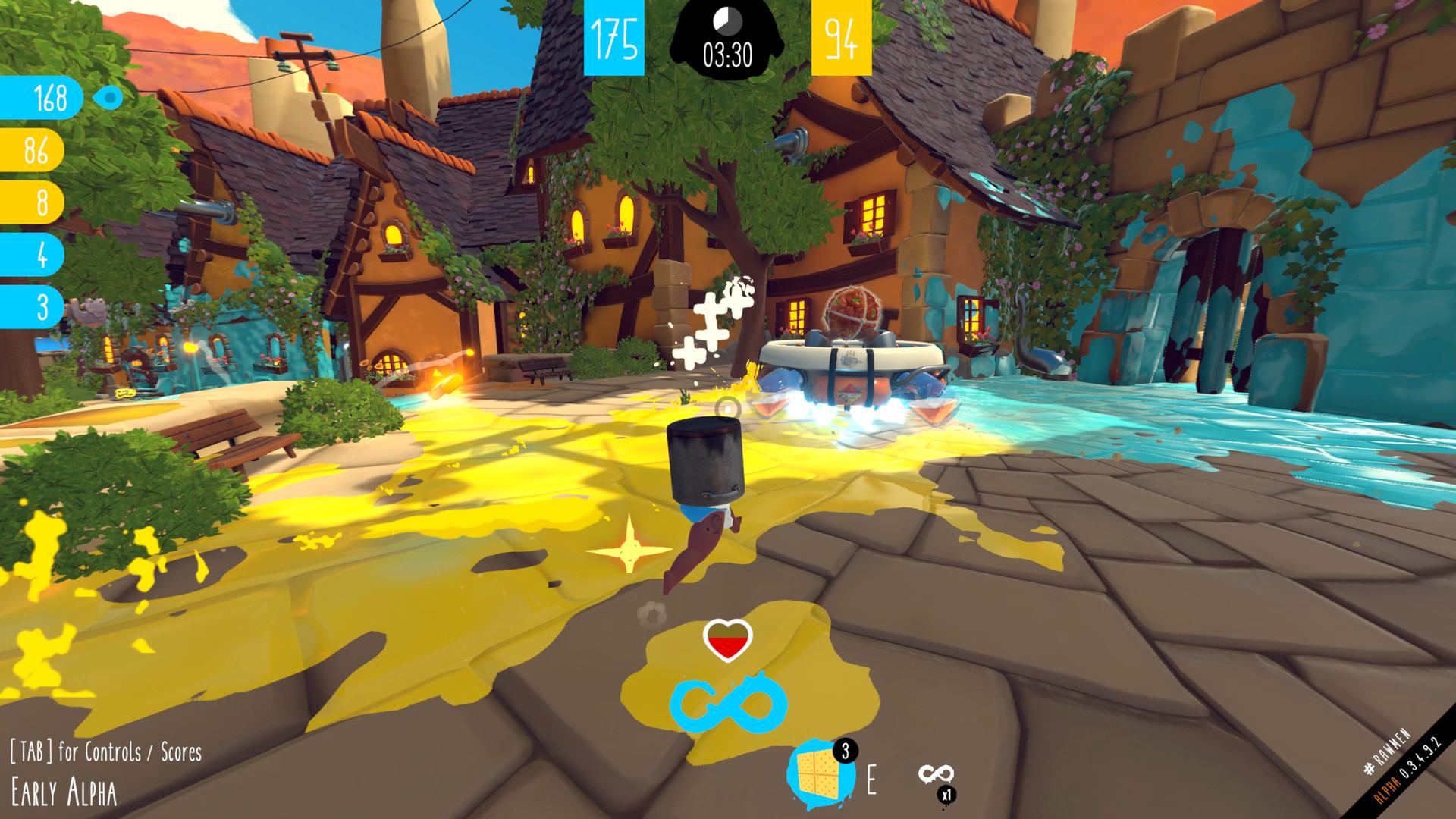- Кусочки и кубики с многочисленным пищевым супер-оружием, которое можно использовать для нападения на других спасителей супа или участия в веселых махинациях;
