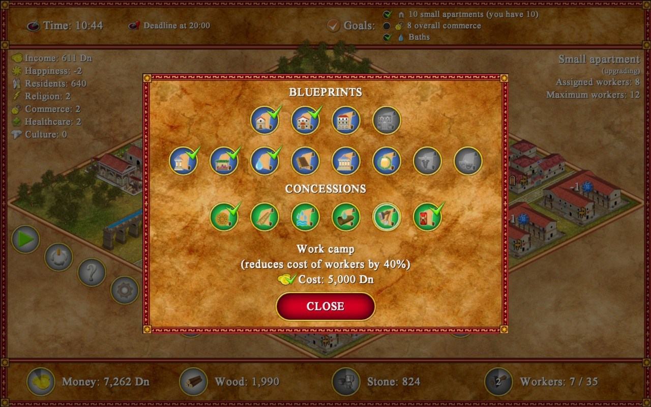 Постройте древний римский город в игре Romopolis. Зарабатывайте деньги, славу и честь в этой захватывающей игре стратегии. Постройте идиллический древний римский город с большим количеством домов и сохраняйте ваших жителей счастливыми, предоставляя все необходимые им услуги.