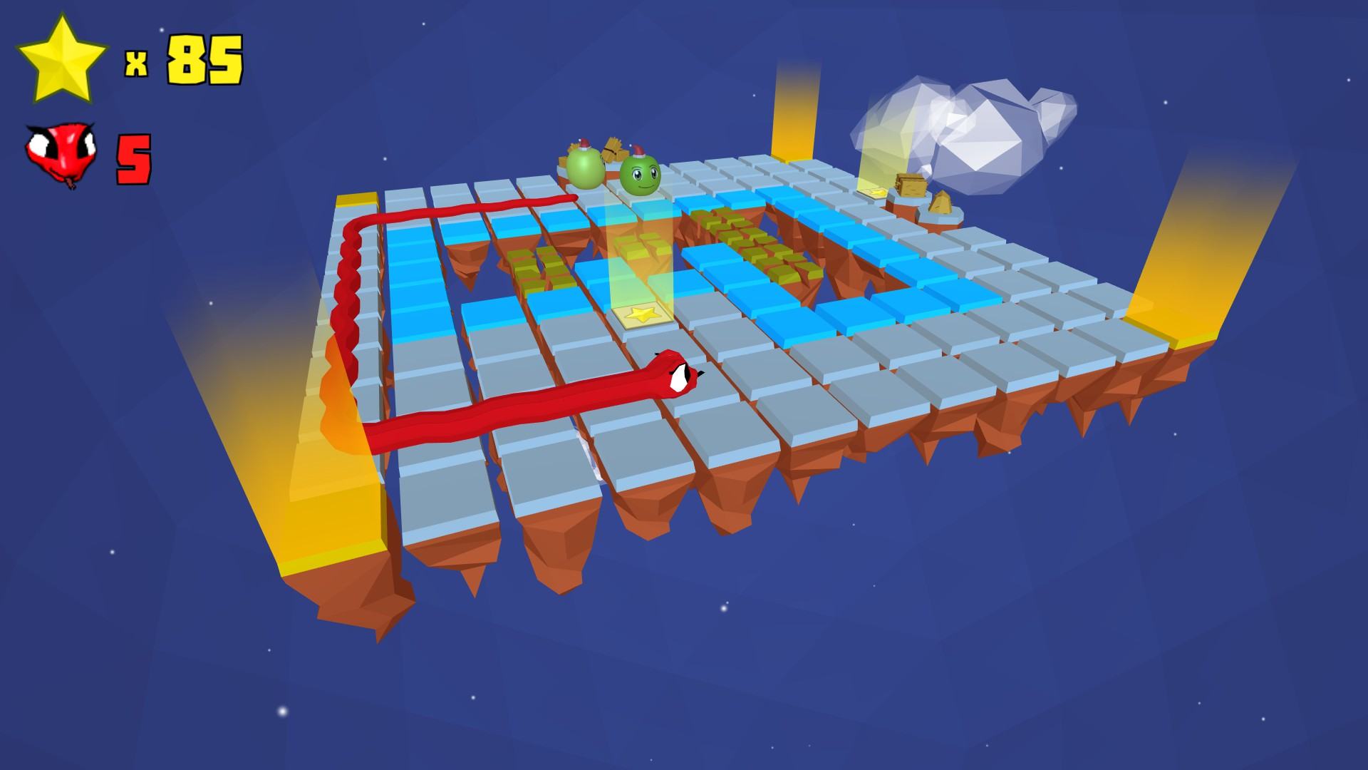 Игра представляет собой довольно интересную идею, наверняка все играли в змейку, так вот, в SnakEscape вы возьмете на себя роль еды и будете убегать от преследующих вас змеек. Интересно, да? В игре ваша задача проста, вам нужно собрать как можно больше звёздочек на уровне, чтобы перейти на следующий уровень.