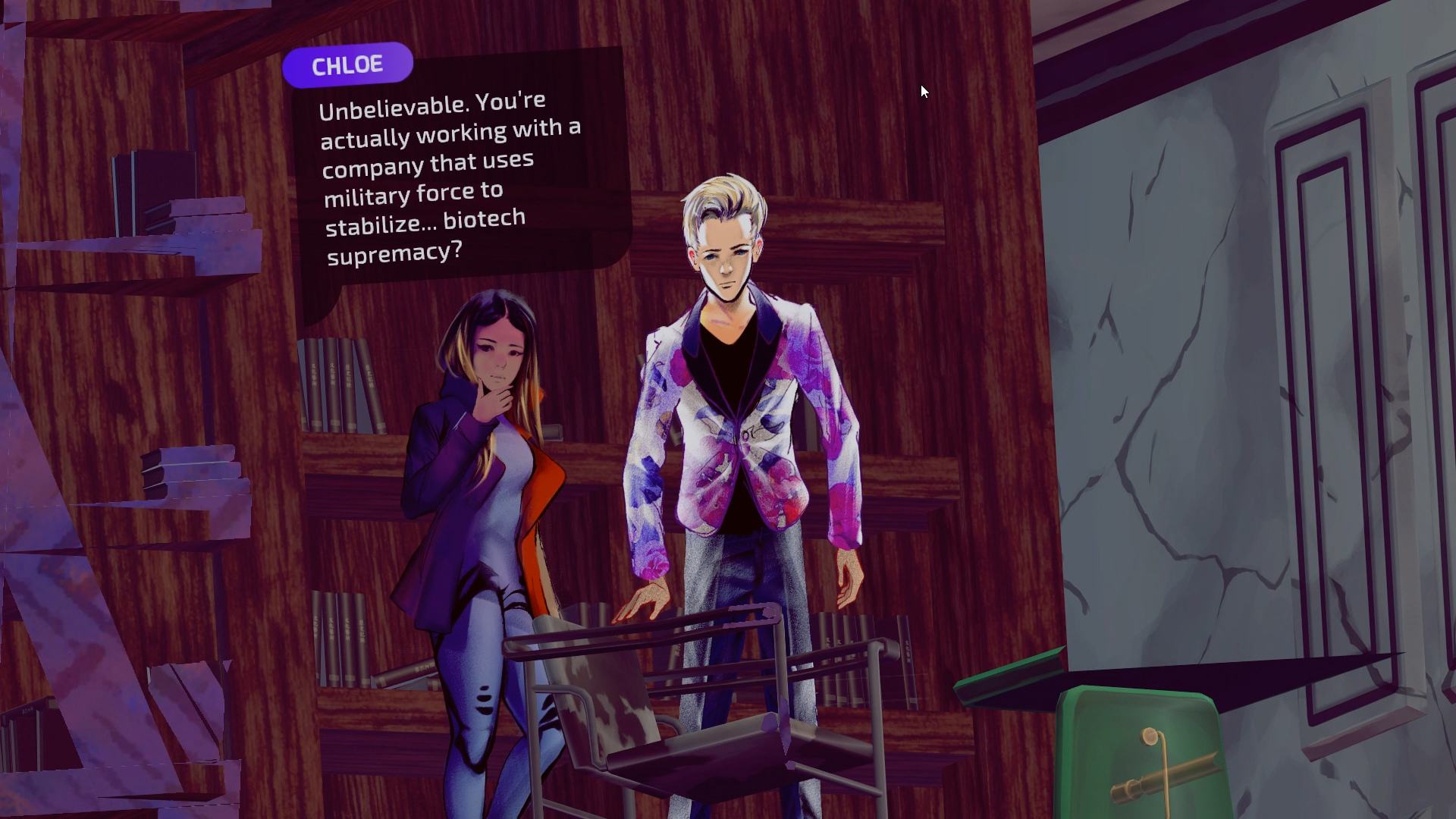 Solace State - это трехмерный визуальный роман о молодой хакерке Хлои, которая приходит в себя после политического пробуждения, разыскивая своих друзей в научно-исследовательском обществе.