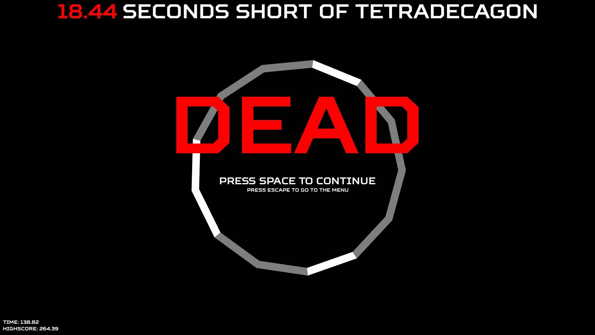Tetradecagon – это великолепная игра, этакий симулятор понга. В этой игре, вы должны постараться сделать так, чтобы мяч отбивался от выделенных сторон, которыми пользователь и управляет, и делать это, вы должны так долго, насколько это только, по-человечески, возможно. Но это будет не так просто, само собой, через некоторое время, мяч будет ускоряться, он будет быстрей и быстрей, также будет и расти число сторон, которыми вы сможете воспользоваться.