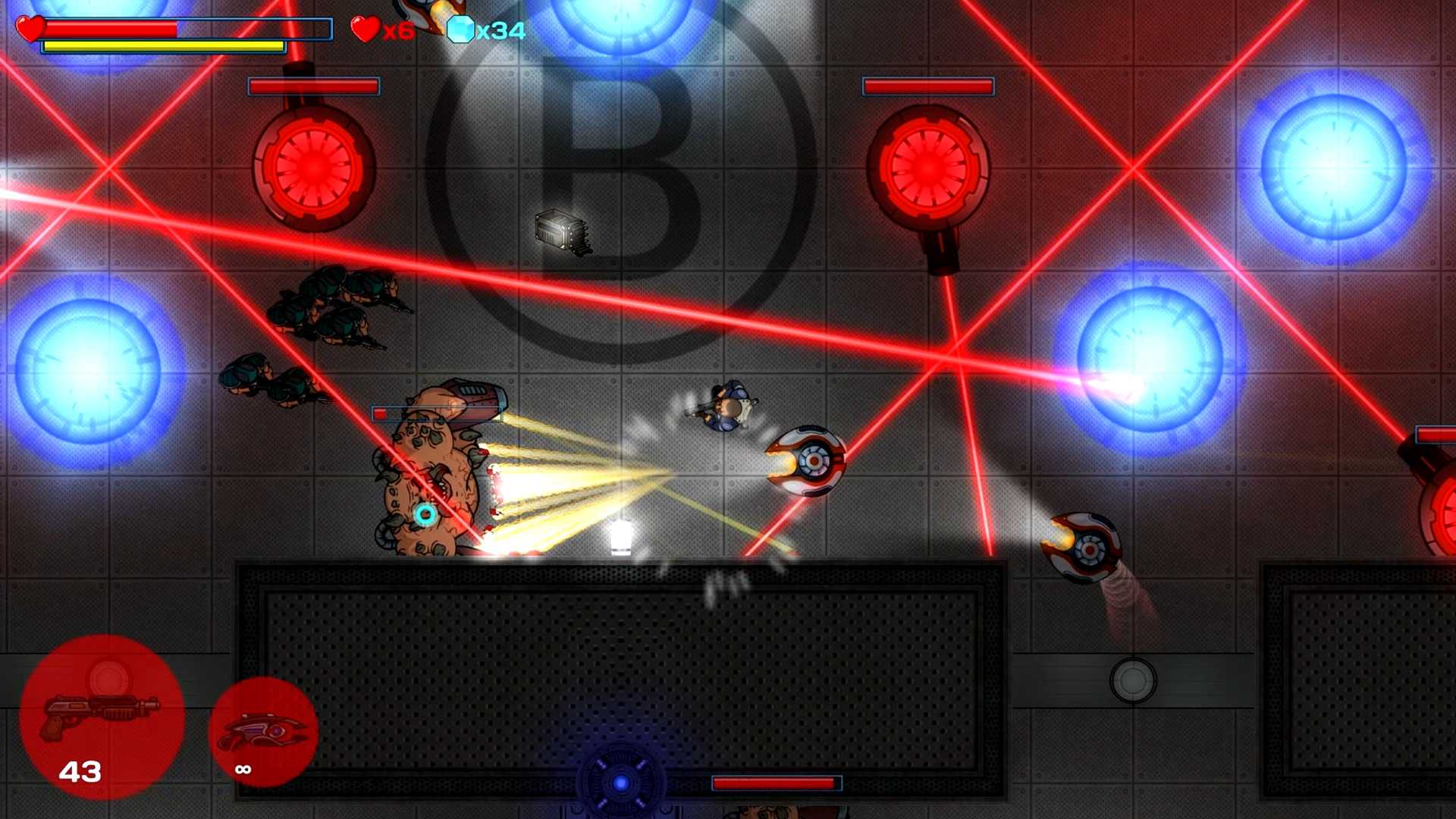 В Trigger Time есть одно оружие под названием «пулемет», одно оружие, называемое «дробовик», одно оружие, называемое «ракетная установка» и т. Д. Таким образом Trigger Time более относится к doom / quake. Предметы / ускорители. Вы можете приобретать предметы и ускорители в Trigger Time, когда вы собрали достаточно драгоценных камней во время игры. Поэтому, если определенный уровень слишком тяжел для вас, и вы умираете, вы всегда можете использовать драгоценные камни, чтобы купить жизнь или апгрейды и увеличить свои шансы на износ уровня.